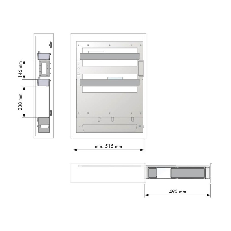 Ampliar Botellero Nova Flat en acero antracita con 3 bandejas de ABS extraíbles, guías ocultas, extracción total y cierre amortiguado.
