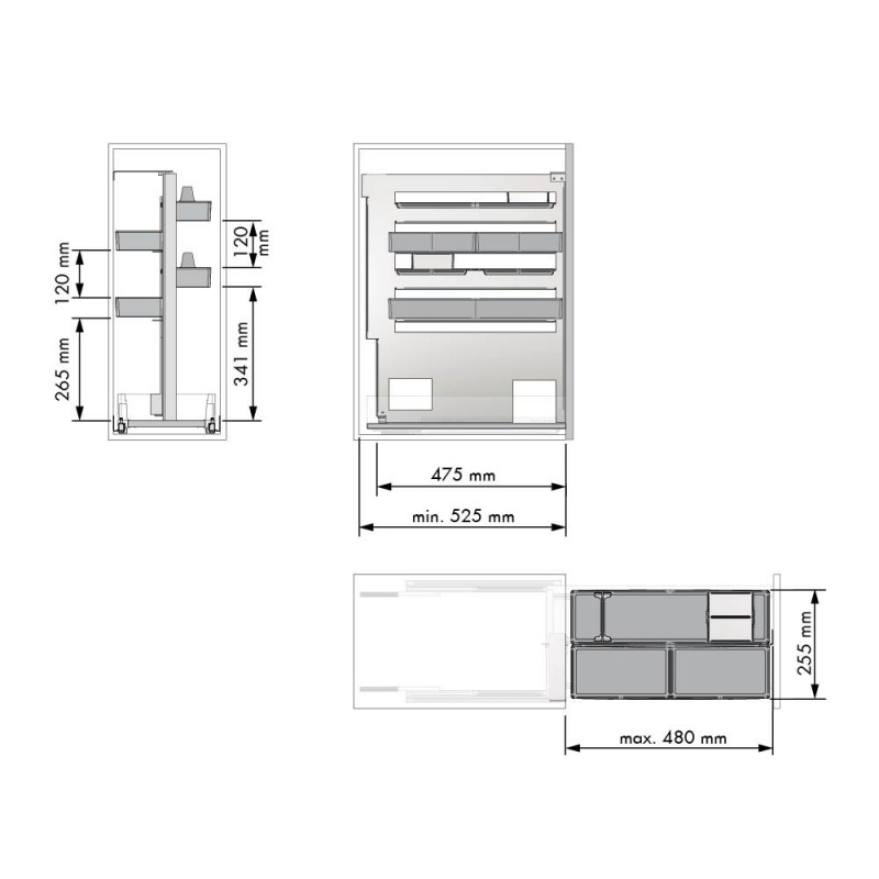 Importante: Este accesorio no incorpora guías propias. Su instalación requiere un mueble con cajón que disponga de guías y base, ya que el sistema se fija directamente a la base del mismo.