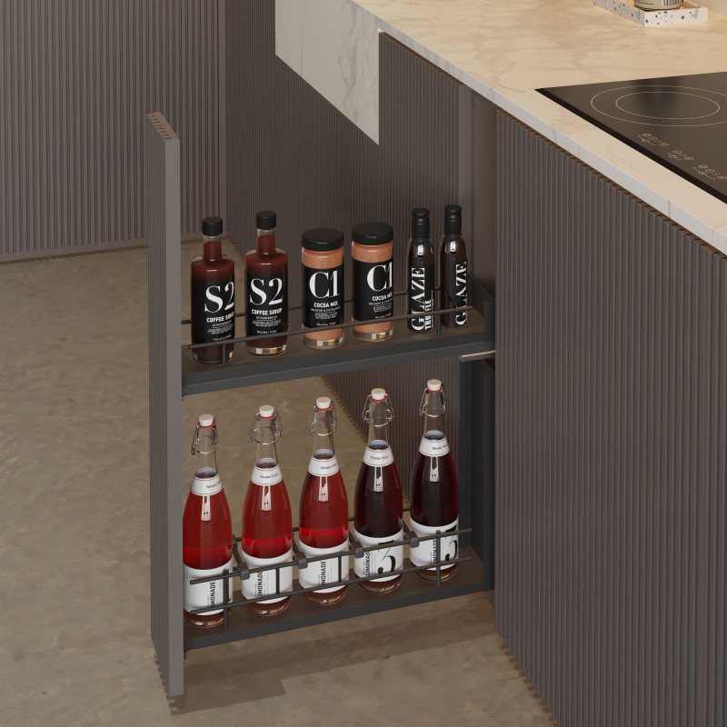 Ampliar Botellero extraíble Compact en color antracita con bases de melamina, guías ocultas, extracción total, cierre amortiguado y carga 30 kg.