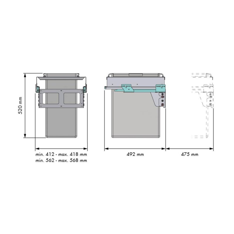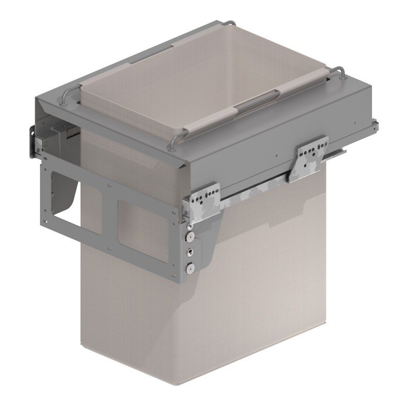 Ampliar Tolva extraíble con frente extraible y cestas de tela gris lavable, guías Grass de acero con cierre amortiguado. Disponible en formato simple o doble segun anchura del mueble.