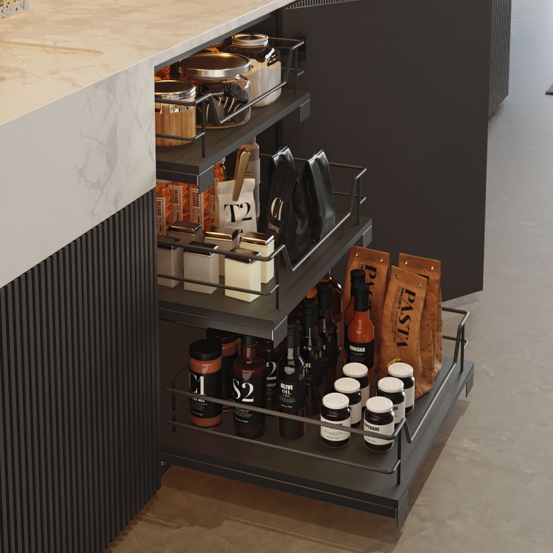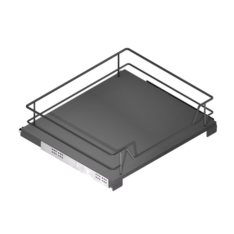 Cesto extraíble multiuso de la gama Compact de Menage Confort, fabricado en acero acabado antracita, ideal para mantener un almacenaje organizado y accesible dentro de los muebles de cocina.