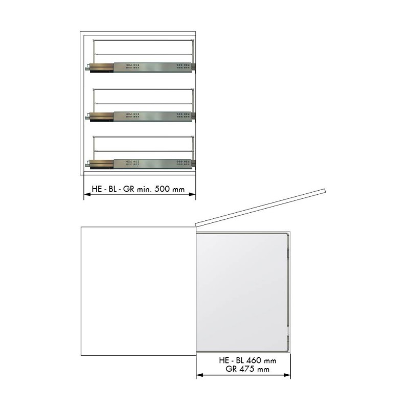 | 500 | Blum (Bl) | 462-468D x 157H x 490L |
