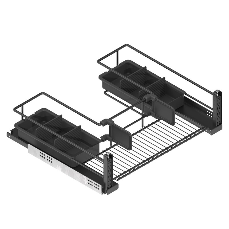 Cesto extraíble de la gama Classic de Menage Confort fabricado en acero color antracita, diseñado para ofrecer un almacenaje práctico y organizado de productos de limpieza u otros artículos en muebles de cocina con cajón bajo fregadero.
