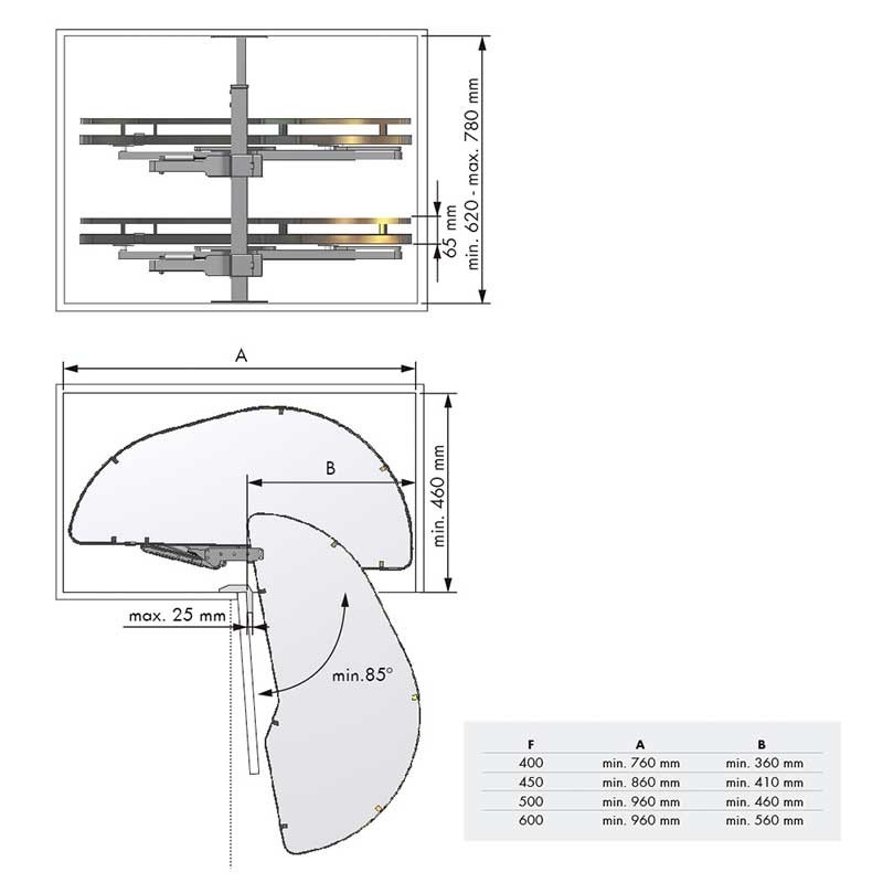 Este extraible no es reversible y tiene una posición de instalación determinada, es decir, dependiendo de hacia donde abra la puerta del mueble donde se vaya a instalar, habrá que seleccionar la "apertura o extracción" por donde sale el extraible. Detallamos a continuación las 2 opciones: