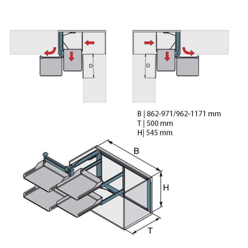 Ampliar Extraíble Rincón en acabado Libell para puertas con bisagras, que se pueden montar a derecha o izquierda (elegir modelo). El mecanismo no va cogido a la puerta, únicamente en el interior del mueble.