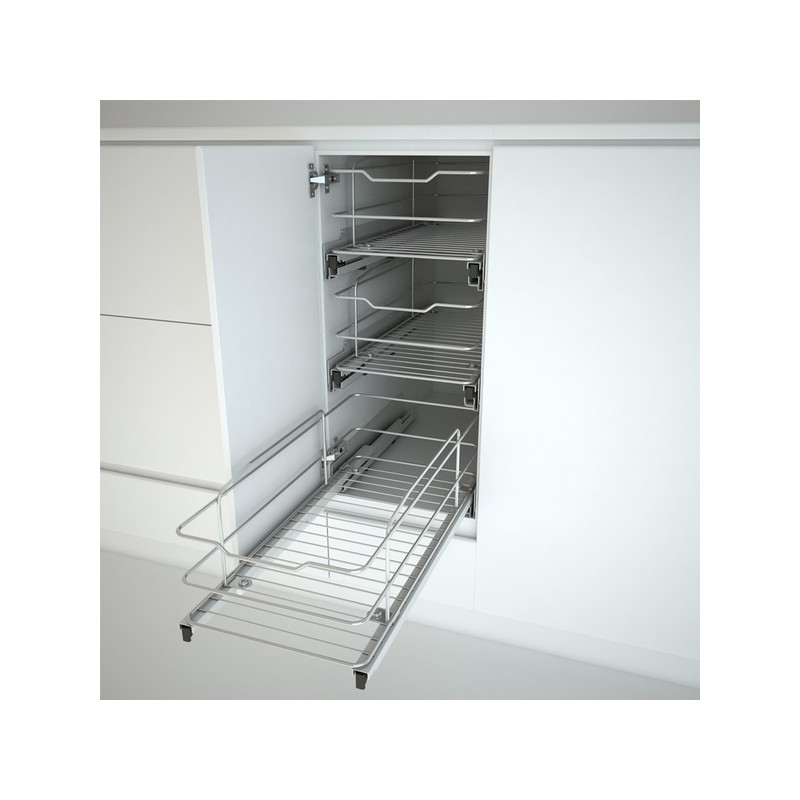 Ampliar Cesto verdulero-despensero extraíble de 140 mm de altura en acero cromado con guías de extracción total para cargas de hasta 30 kg.