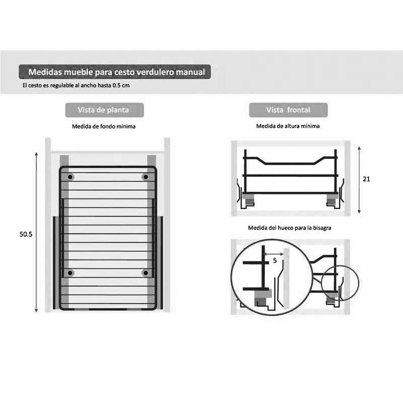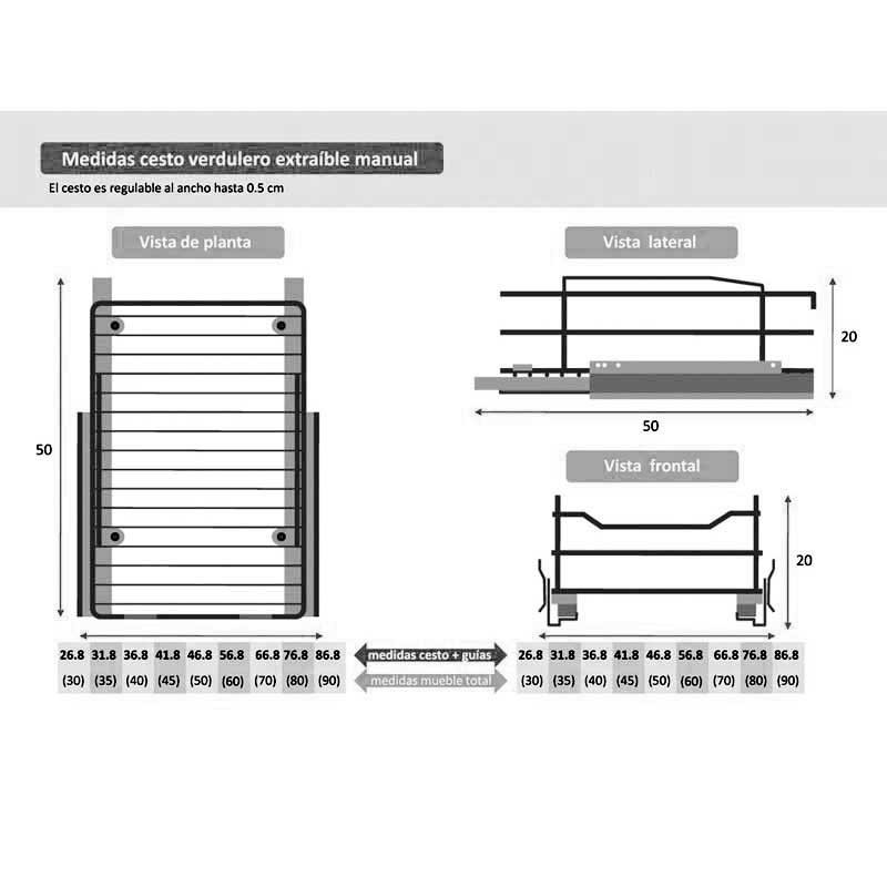 Información adicional: Los cestos se vende de forma independiente, 1 cesto extraíble completo con sus guías correspondientes. El precio corresponde a 1 unidad.