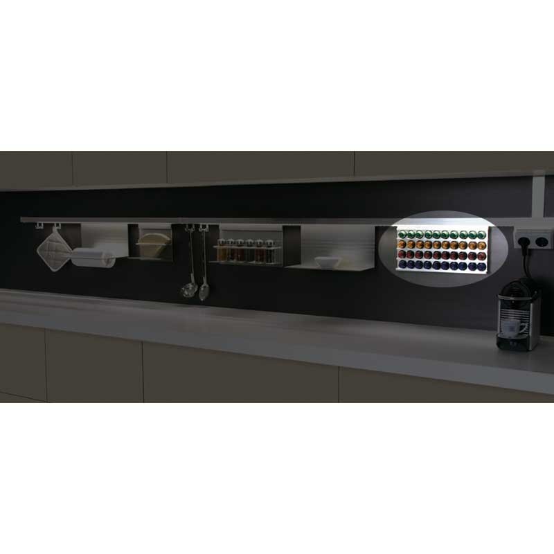 Ampliar Portacápsulas de café en aluminio para cocina compatible con barra modelo Stark. Disponible en varios acabados y 2 medidas.