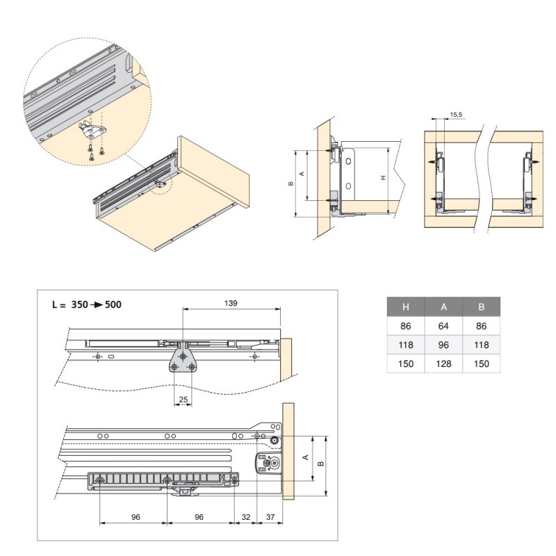 Ampliar El kit de cierre suave para cajón Ultrabox es perfecto para evitar golpes y mejorar el confort de tus muebles. Este mecanismo aporta un cierre amortiguado del cajón de acero Ultrabox.