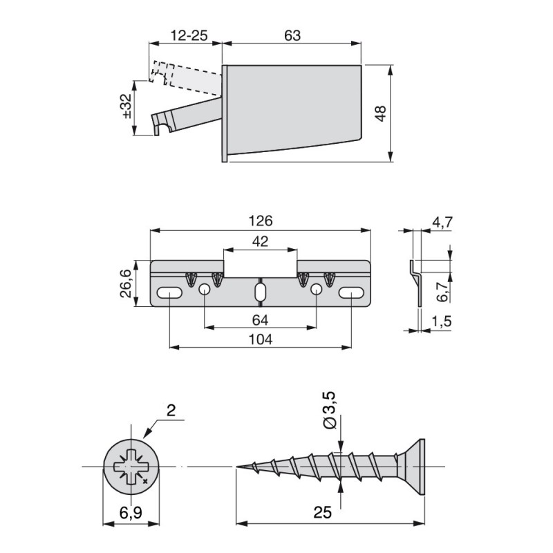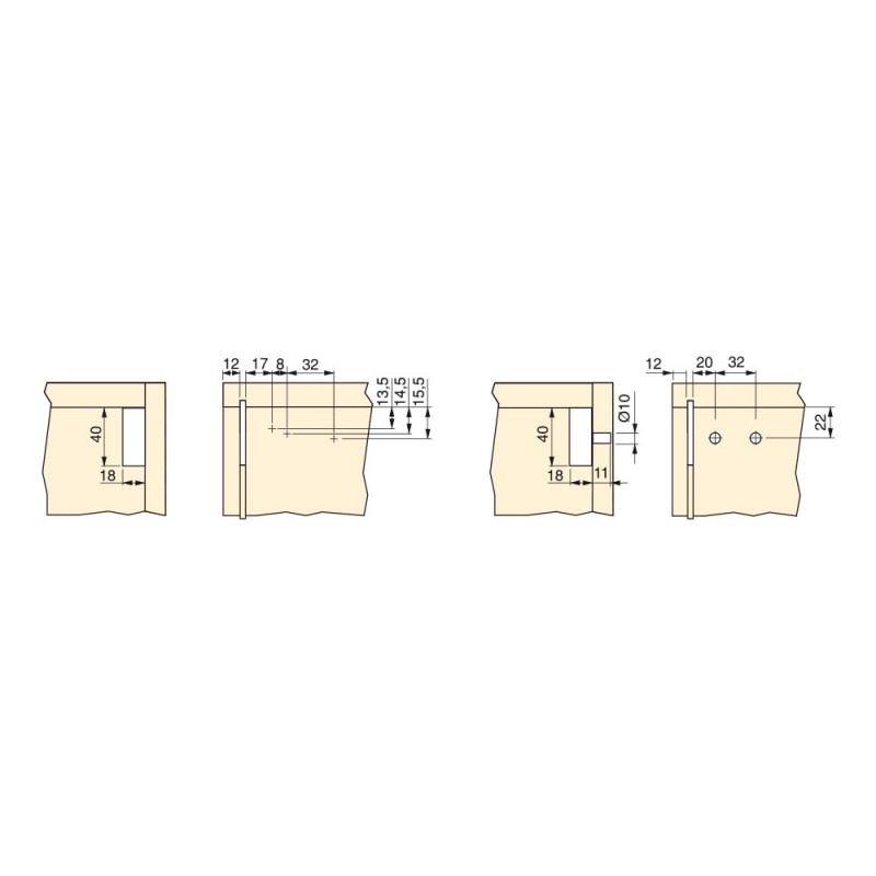 Juego de colgadores Hook para módulos superiores de armarios en muebles de cocina, baño y hogar. Destaca por soportar grandes cargas de peso de hasta 70 kg según UNI 10716, y por su regulación en el frontal de la posición de módulo en profundidad y altura. Su fijación se realiza atornillado en el costado del módulo con un mecanizado en la trasera. Asimismo su colocación en la pared se realiza mediante una pletina y se cubren con tapas a medida una vez montados en el mueble.