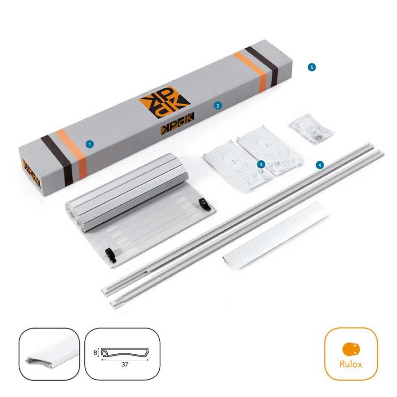 Los kit de persiana de Servicanto de la gama Rulox Basic cuentan con un sistema de compensado de la caída de las lamas. El mecanismo incorpora dos flejes independientes que garantizan un correcto funcionamiento y durabilidad de la persiana.