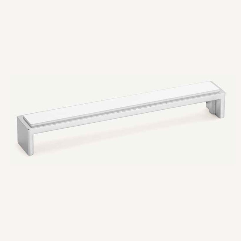 Ampliar Pomo para muebles de cocina estilo moderno en acabado cromo o cromo mate combinado con granito. Incluye los tornillos para su montaje.