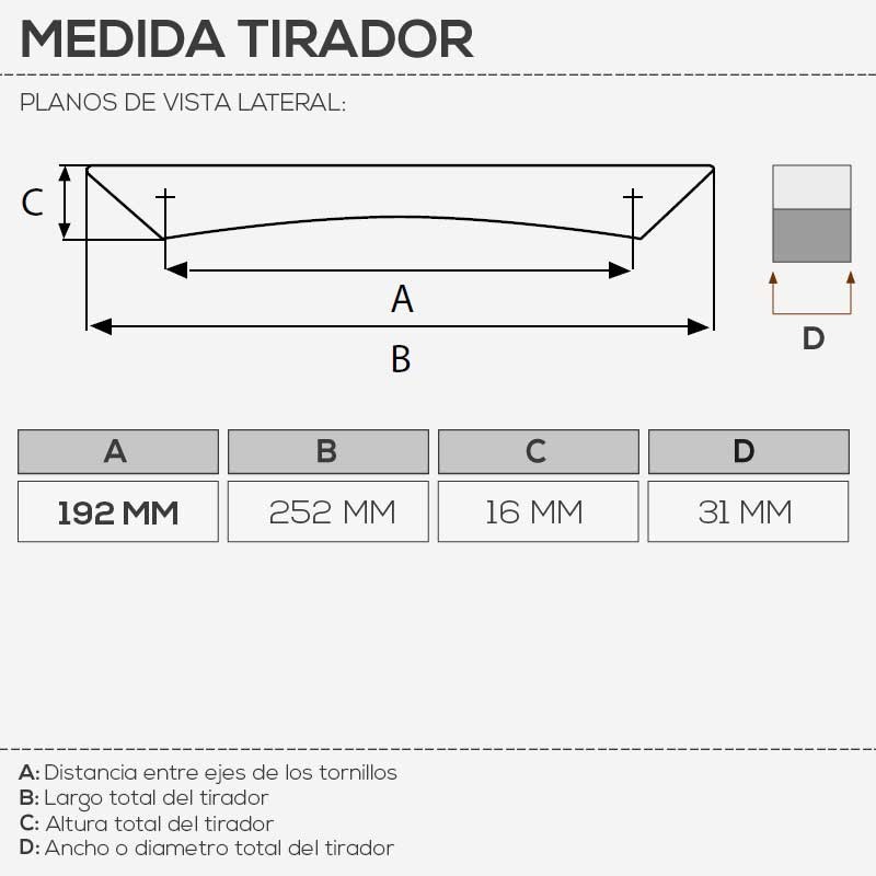 Tirador en Zamak para armarios de cocina, cajones, muebles y mobiliario en general.