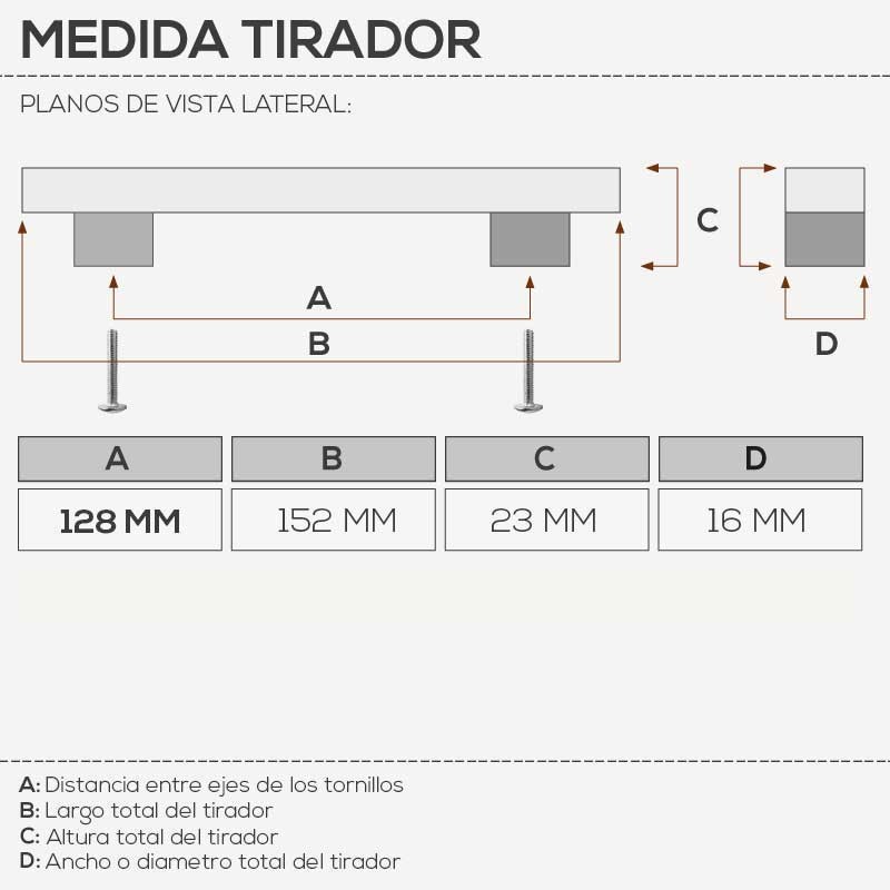Tirador en Zamak de diseño moderno para armarios de cocina, cajones, muebles y mobiliario en general.