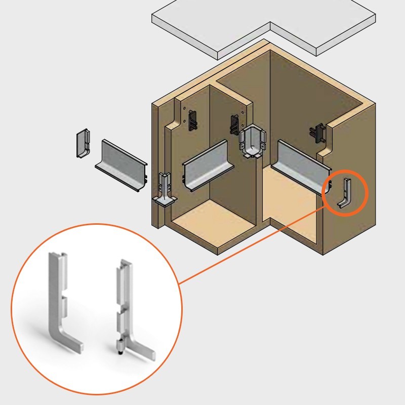 Tapas para remate final de perfiles sistema gola horizontal superior. Compatible con todos los gola superior ref.8006. Varios acabados.